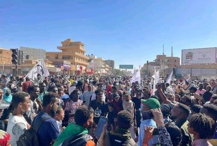 ورصدت (شبكة صقر الجديان) تجمع آلاف المتظاهرين في تقاطع “المؤسسة” لإحياء قتلى احتجاجات 17 نوفمبر، والمطالبة بالقصاص لهم، مع ترديد شعارات ورفع لافتات تطالب بالحكم المدني، وتندد بالعسكر.