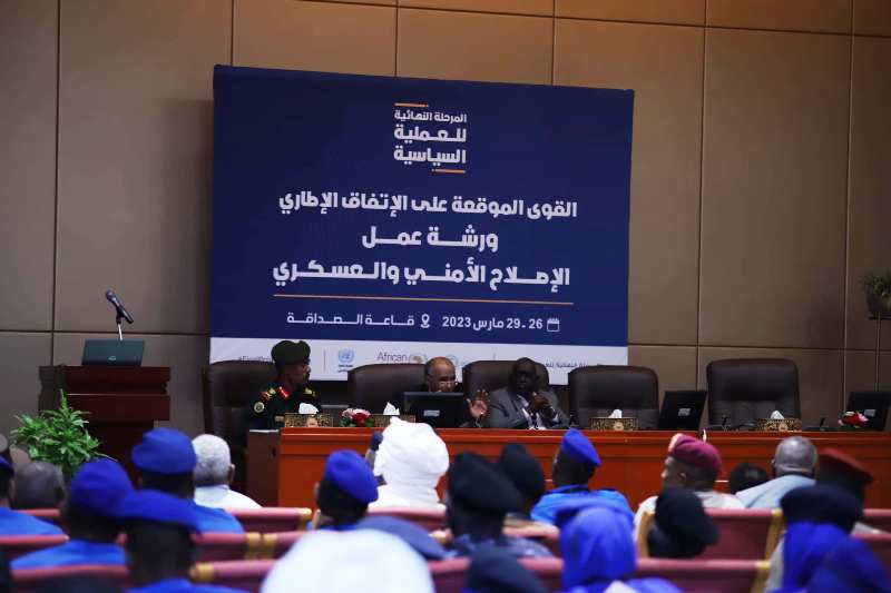 وناقشت الورشة خلال فترة انعقادها قضايا الإصلاح في المنظومة العسكرية والأمنية بما يقود لوجود جيش واحد مهني وقومي والترتيبات الأمنية وإصلاح جهازي الشرطة والمخابرات.