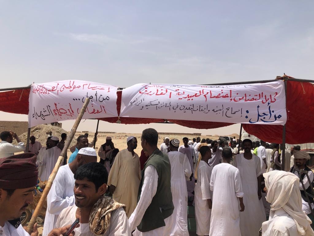 ودخل اعتصاماً سلمياً نظمه سكان منطقة العبيدية الفاروق يومه الخامس، حيث يطالبون بتوفير عدد من المطالب التنموية واقالة مدير الشركة السودانية للموارد المعدنية الحكومية.