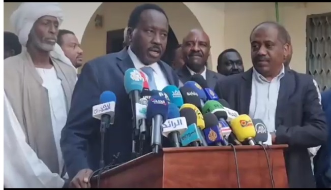 وأعل التزام الكتلة الديمقراطية باتفاق السلام ووقف اطللاق النار وعدم العودة للحرب إلا في حال الدفاع عن النفس، فضلاً عن التزامها بتشكيل حكومة مدنية كاملة بالتوافق بين المدنيين ودعمهم لخروج الجيش من السلطة وقال “خروج العسكريين لا يتم إلا بوحدة القوى السياسية”.