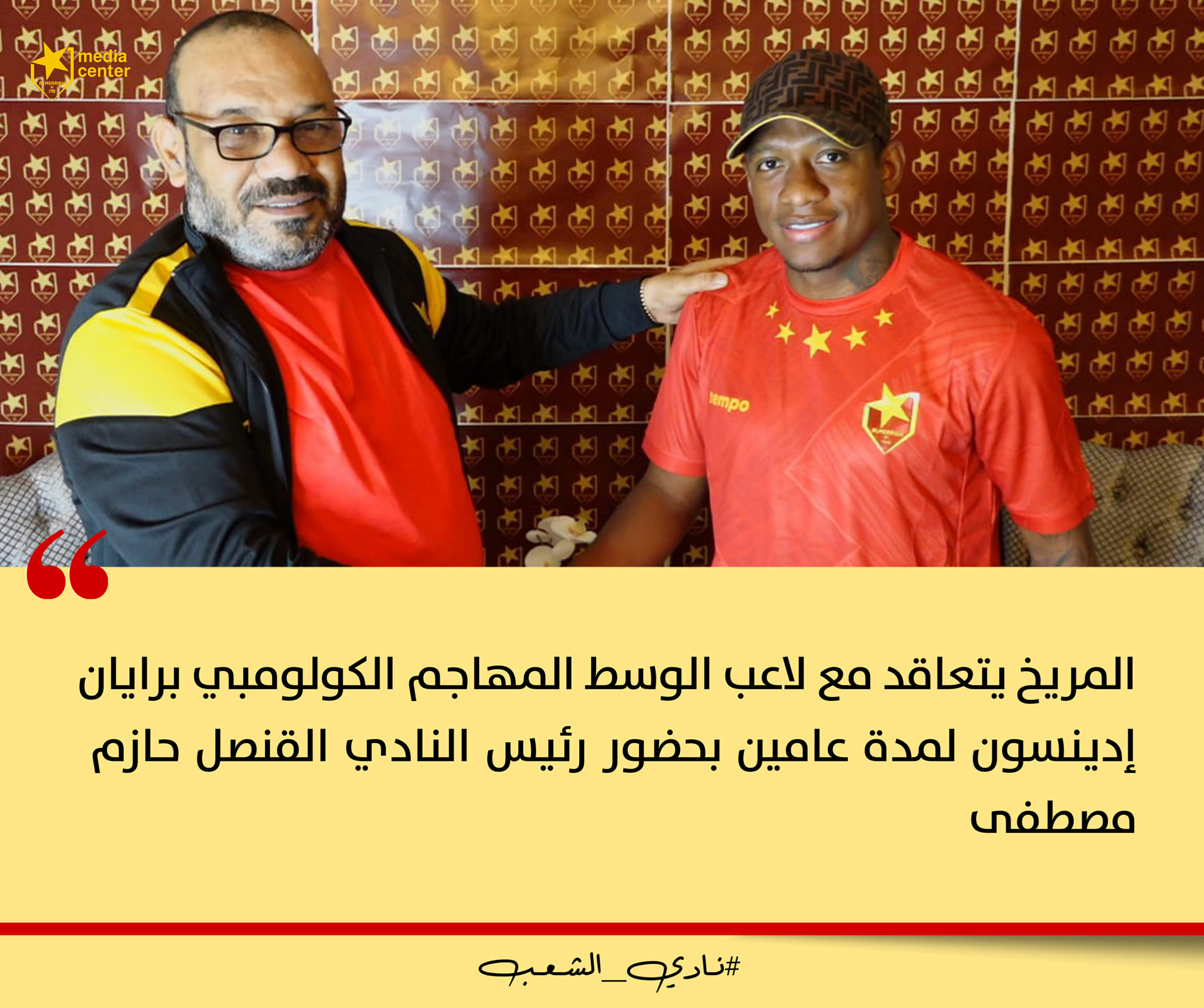 وكتب حساب المريخ الذي يشرف عليه طاقم موظفين يعترف الاتحاد السوداني بالتعامل معهم في ظل الوضع الإداري العالق بالنادي: “المريخ يتعاقد مع لاعب الوسط المهاجم الكولومبي برايان إدينسون لمدة عامين بحضور رئيس النادي القنصل حازم مصطفى”.