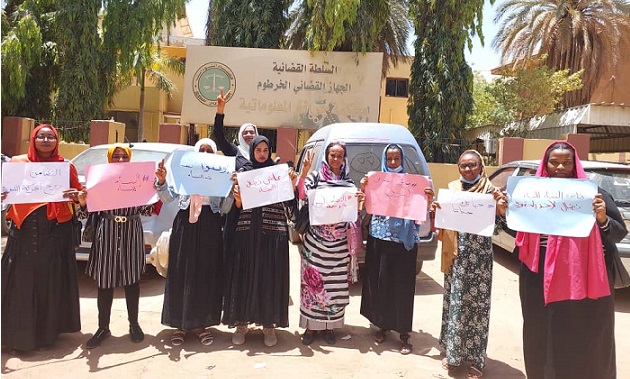 نظمت مجموعة نسائية الاثنين وقفة أمام محكمة الملكية الفكرية بالخرطوم للتضامن مع سيدة ،وثلاث فتيات يواجهن اتهامات باشانة السمعة وانتهاك الخصوصية.