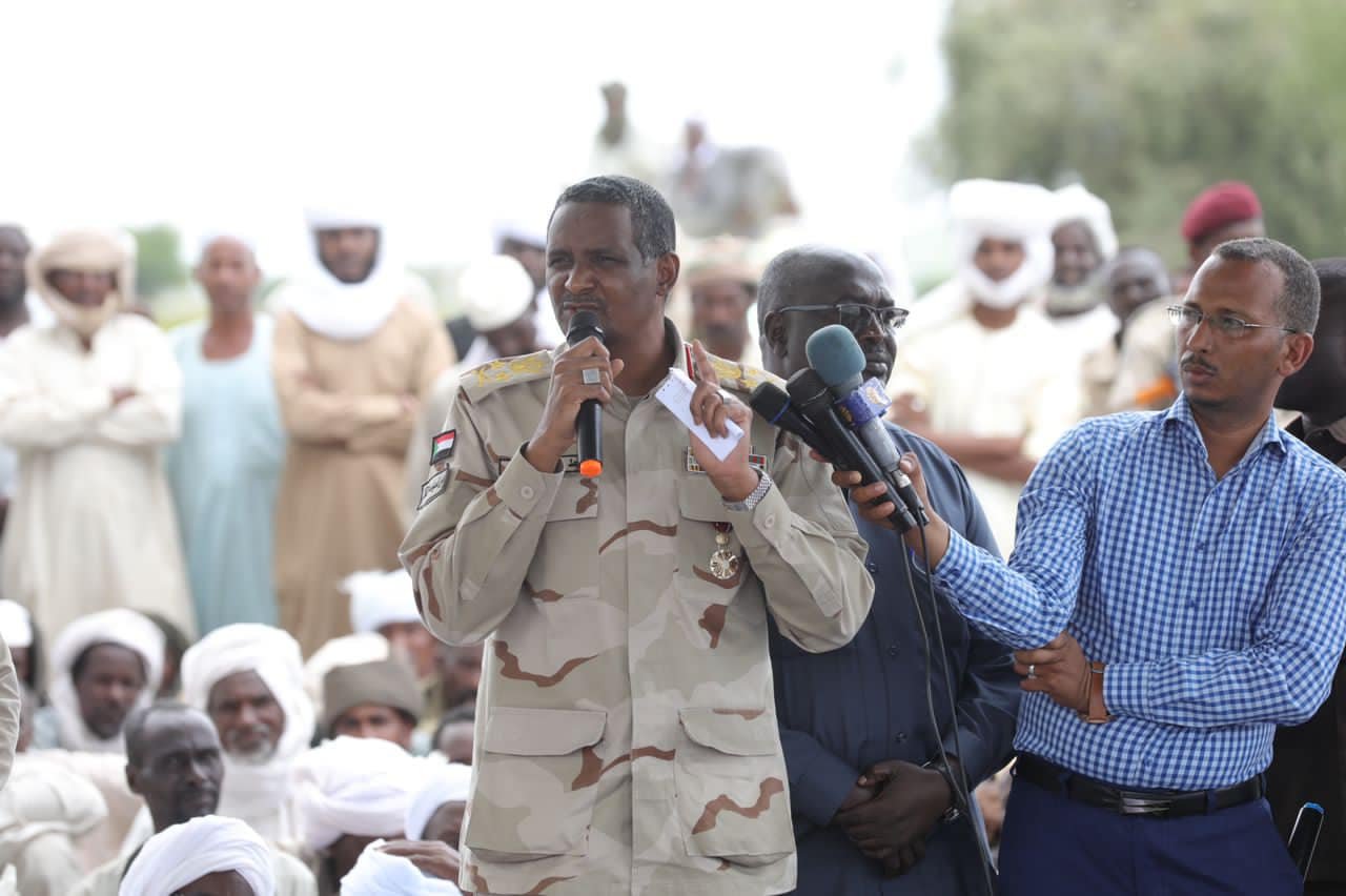 ووصل حميدتي ضمن وفد عسكري رفيع بمعية والي غرب دارفور خميس عبد الله أبكر إلى محلية سربا 60 كلم شمال مدينة الجنينة وخاطب حشدا من ذوي الضحايا بمنطقة “أبوسروج”.