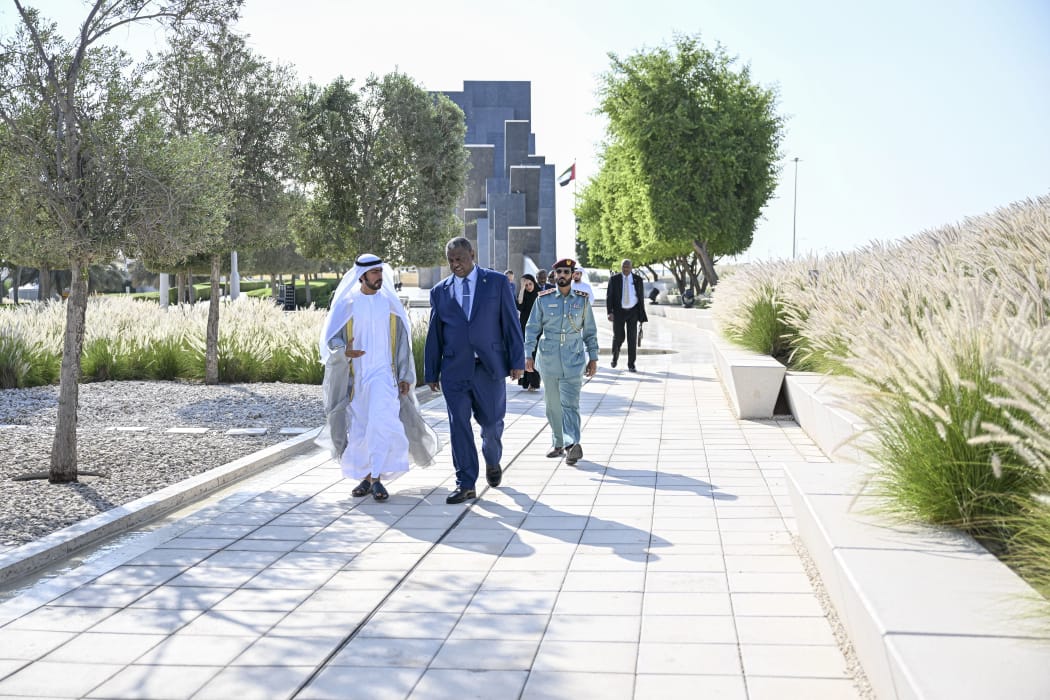 خليفة بن طحنون يستقبل وزير الداخلية السوداني المكلف في واحة الكرامة