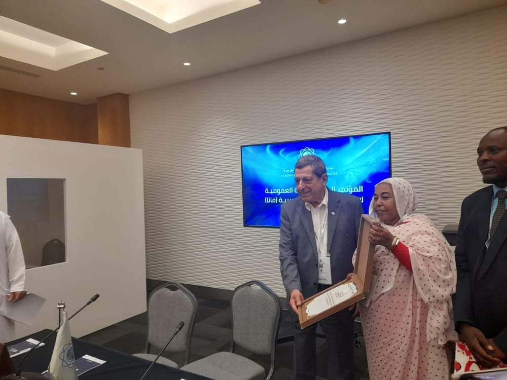 كرمت دكتورة فكرية أبايزيد، مدير عام وكالة السودان للأنباء (سونا) الأمين العام لاتحاد وكالات الأنباء العربية (فانا) دكتور فريد أيار، خلال الجلسة الختامية للمؤتمر ال 49 لجمعية العمومية لاتحاد وكالة الأنباء العربية (فانا) الذى انعقد بمركز أبوظبي الوطني للمعارض بالتزامن مع الكونغرس العالمي للإعلام.